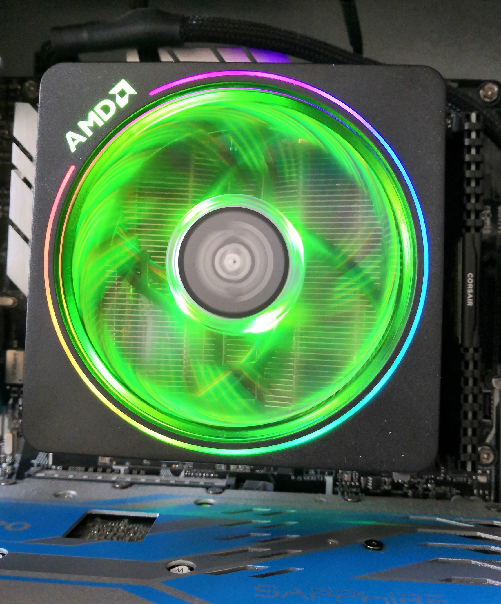 With the new CPU in place, the next step is to attach the provided Wraith Prism cooler. It’s a bit beefier than the Spire cooler, provided with the R7 1700, in order to cope with the 105 watt TDP of the R7 3800X. The R7 1700 is rated at 65 watts. Securing the heatsink took a bit pressure, on the latch, and I was slightly worried it could break off. But, once secured, it sat tightly on the CPU. Whole thing was done in under 30 minutes.